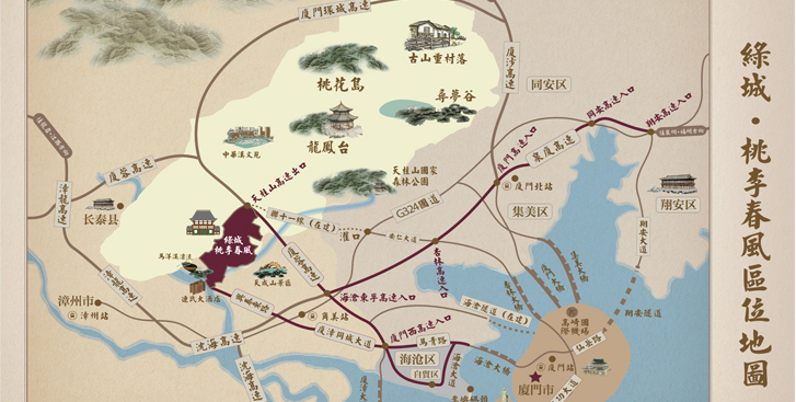 桃李春風(fēng)依山傍水,倡導(dǎo)“產(chǎn)城”融合概念,規(guī)劃兩心、四園、八大核心功能,涵蓋中西式院墅、生態(tài)公寓、金融產(chǎn)業(yè)服務(wù)平臺(tái)、創(chuàng)意辦公、溫泉酒店、小鎮(zhèn)中心等多種業(yè)態(tài)。